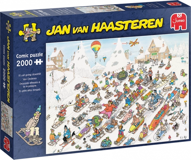 Ontdek de originele humor en onmiskenbare stijl van de wereldberoemde maker Jan van Haasteren. De illustratie “Van de heuvel af” biedt een bonte scène vol grappen, onverwachte situaties en personages die je bij elke nieuwe legpoging laten lachen. Het grote formaat en de hoogwaardige druk zorgen ervoor dat je van elk detail kunt genieten.