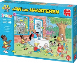 Ontdek een leuk familiepuzzel met een illustratie van de legendarische cartoonist JAN VAN HAASTEREN. De set bevat 240 stukjes en zit vol humoristische details die garant staan voor urenlang plezier. Je vindt er de typische haaienvin, mysterieuze handen en andere verborgen motieven – allemaal rond het thema Goochelaar. Ideaal voor jongere puzzelaars en om samen met ouders te leggen.
