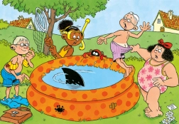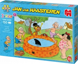 Duik in de knotsgekke scènes uit de Junior-editie – Grappen bij het zwembad van de legendarische karikaturist JAN VAN HAASTEREN. Typische signaturen zoals de haaienvin, onverwachte losse handen, een kunstgebit, Sinterklaas en het zelfportret van de auteur veranderen het puzzelen in een zoekavontuur vol lachmomenten.