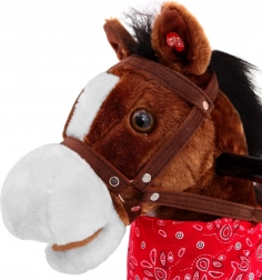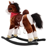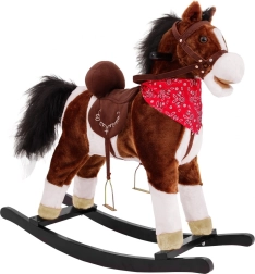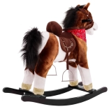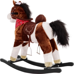 Deze stijlvolle schommelpony in donkerbruin combineert een klassieke uitstraling met moderne interactieve functies. Het zachte pluche voelt prettig aan, terwijl de houten schommelbasis stabiliteit en een vloeiende beweging biedt. Dankzij het zadel met stijgbeugels en de teugels zitten kinderen zekerder en is er meer speelplezier.