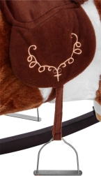 - Pluche, hout, metalen onderdelen (stijgbeugels)