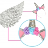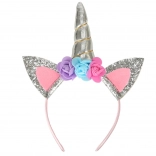 Deze diadeem verandert elk kind in een magische eenhoorn dankzij de elegante zilveren hoorn en decoratieve bloemen.