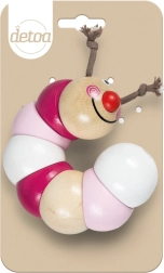 Detoa Roze Rups Tea is een interactieve, kleurrijke speelgoedrups van houten vormen geregen op een elastiek, die beweegt, draait en buigt. Ideaal voor de ontwikkeling van de fijne motoriek van kinderen vanaf 6 maanden.