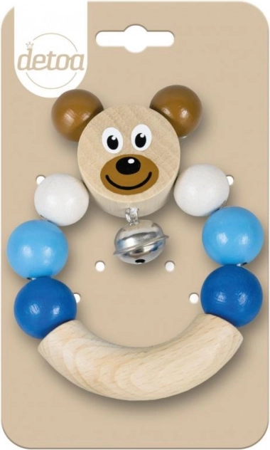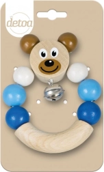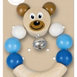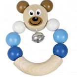 Houten rammelaar met een beertje in blauwe kleur. Gemakkelijk vast te houden, het belletje rinkelt zachtjes.