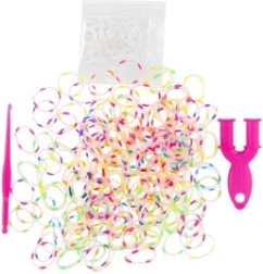 Bevat alles wat je nodig hebt om armbanden te maken - 200 regenboog elastiekjes, een haak en sluitingen.