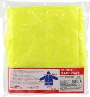 Gemaakt van plastic, de regenjas biedt betrouwbare bescherming tegen regen, waardoor het kind droog blijft.