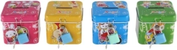 Dankzij de cartoonfiguren en kleuren springt de spaarpot in het oog in elke kinderkamer.