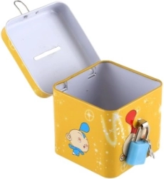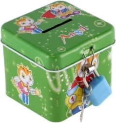 Dit model metalen kinderspaarpot is ontworpen om eenvoudig en tegelijk praktisch te zijn. Dankzij de veilige constructie en het aantrekkelijke uiterlijk met cartoonfiguren is het een perfecte accessoire voor elk kind.