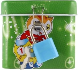 Perfect voor kinderen die leren sparen: de spaarpot heeft een stevig slot dat ervoor zorgt dat munten blijven waar ze horen. Verkrijgbaar in vier verschillende kleuren, biedt hij voor ieder kind wat wils.
