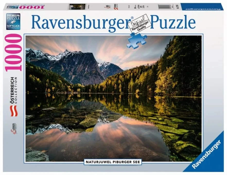 Duik in de wereld van puzzels met de premium puzzels van Ravensburger en creëer een prachtig beeld van het serene Piburgermeer. Het antireflecterende oppervlak met linnenstructuur zorgt voor heldere kleuren zonder storende schittering en comfortabel puzzelen, ook bij kunstlicht.