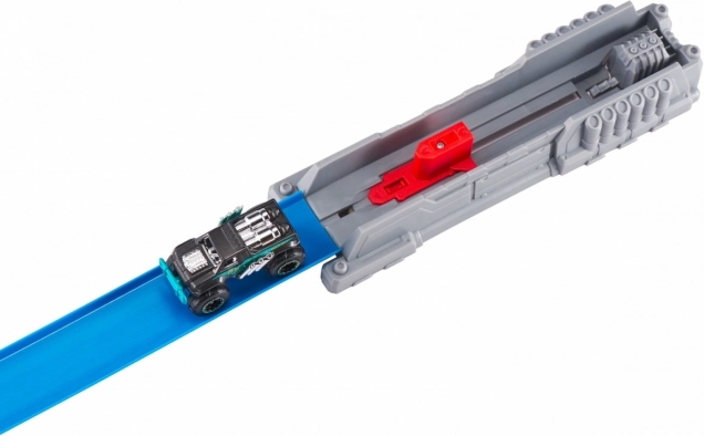 De set bevat een baan met een lanceerder, een monstertruck en een enorme krokodillenval. Plaats je Metal Machines-voertuig op de lanceerplek, span de lanceerder en kijk hoe het voertuig de baan afraast. Je moet de krokodillenval op tijd passeren om het gevaar te ontwijken!