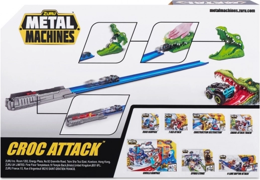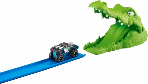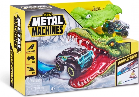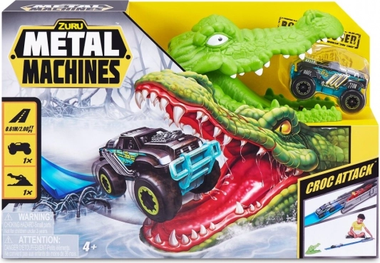 Zuru Metal Machines Krokodillenaanval is een racebaan die je meeneemt naar een wereld vol actie. Ga de confrontatie aan met de gevaarlijke krokodil die op je Monster Truck loert. Haal voldoende snelheid om de krokodillenkaken veilig te passeren.