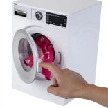 De wasmachine biedt vier wasprogramma’s die worden begeleid door authentieke geluiden. Het water kan met behulp van een slang eenvoudig worden afgelaten. Knoppen maken het mogelijk afzonderlijke functies te starten en een volledige wascyclus te imiteren, wat de verbeelding en motorische vaardigheden van kinderen stimuleert.