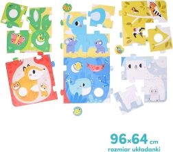 Deze educatieve puzzel heeft imposante afmetingen en prachtige illustraties van dieren van over de hele wereld. Dankzij de verwisselbare schijfjes kunnen de afbeeldingen naar wens worden gevarieerd, waardoor kinderen veel creatieve en leerzame activiteiten te wachten staan – en niet alleen klassiek puzzelen.
