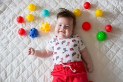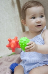 Gebruik ze voor vrij ontdekken, de eerste pogingen tot overpakken van hand tot hand, het oefenen van rollen en gooien en voor een zachte ontspanningsmassage van buik, rug of voetzolen. De verschillende texturen helpen de hersenen aanrakingsprikkels goed te verwerken en brengen kinderen tot rust tijdens het spelen en voor het inslapen.