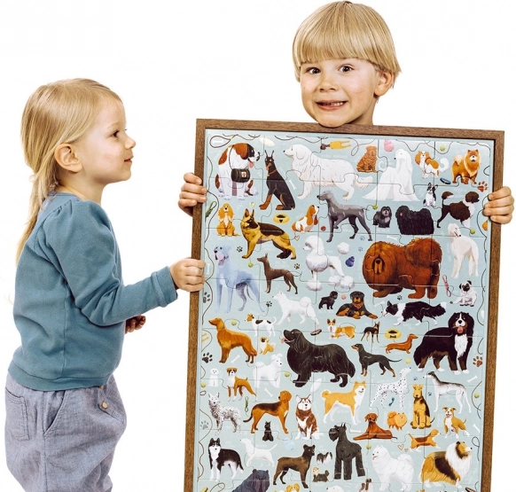 Schattige viervoetige sterren nodigen kinderen uit om te spelen! Grote puzzel met 40 stukjes toont vrolijke honden van verschillende rassen en is een geweldige keuze voor de eerste grotere legpuzzel. Ze stimuleren oplettendheid, geduld en fijne motoriek en zorgen tegelijk voor veel plezier voor het hele gezin.