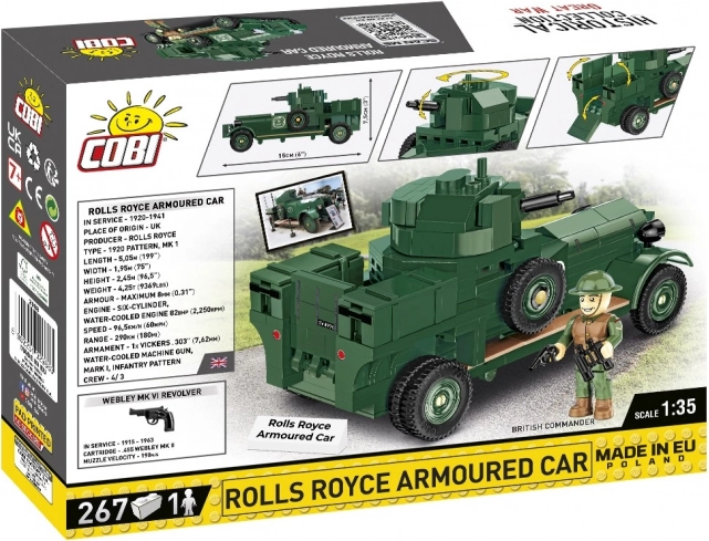 Dit model vertegenwoordigt de legendarische gepantserde Rolls-Royce auto die aan het eind van de jaren 20 van de vorige eeuw werd gebruikt. Het werd ingezet in verschillende delen van de wereld, van Ierland tot Egypte. Na de Tweede Wereldoorlog werd het een belangrijk onderdeel van de Museumcollecties van het Tank Museum.