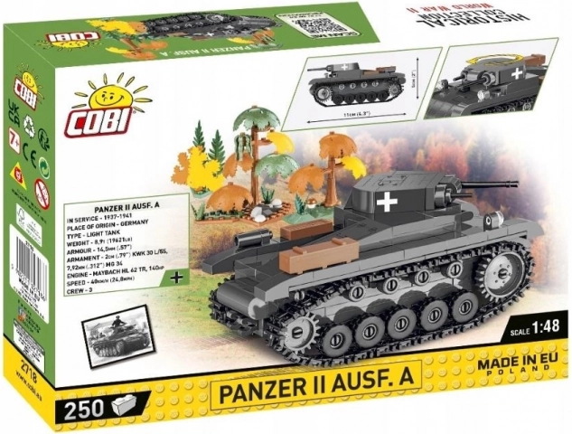 Duik in de modelbouwervaring met deze bouwset van de Panzerkampfwagen II, een sleutelvoertuig van het Duitse leger aan het begin van de Tweede Wereldoorlog. Dankzij de nieuwe schaal 1:48 is het model ideaal voor zowel beginners als fans van COBI-bouwsets. In de doos vind je accessoires uit de bouwsteenwereld, die een nieuwe dimensie aan het speelplezier toevoegen. De uitzonderlijk nauwkeurige constructie en de hoge kwaliteit van de prints zorgen ervoor dat het model onberispelijk blijft, zelfs na urenlang spelen.