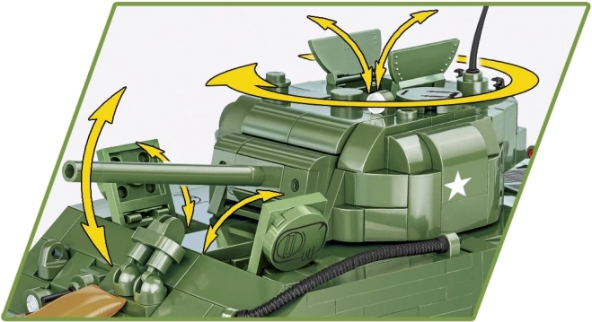 M4 Sherman was de standaard Amerikaanse middelzware tank die werd geproduceerd tussen 1942 en 1945. De Sherman stond bekend om zijn betrouwbaarheid, eenvoudige productie en goede bewapening. De set bevat hoogwaardige prints die niet slijten, zelfs niet bij intensief spelen.