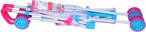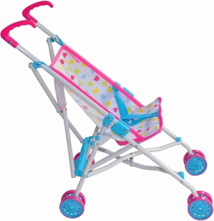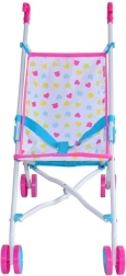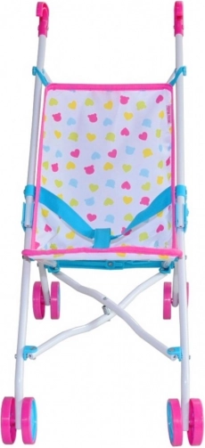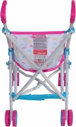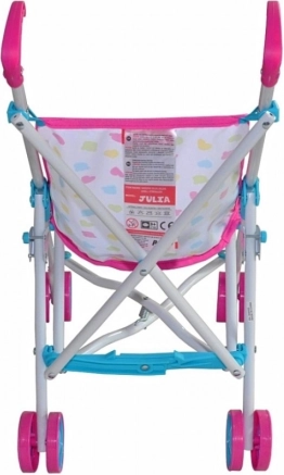 Schattige poppenwagen Milly Mally Julia Candy met een licht metalen frame, gemaakt voor dagelijks spelen binnen en buiten. Voorzien van een inklapbaar paraplu-frame, veiligheidsriemen en een vergrendeling tegen onbedoeld inklappen. Dankzij de wasbare polyester bekleding en slijtvaste kunststof wieltjes is hij ideaal voor poppen tot 50 cm en stimuleert hij fantasie en rollenspel.