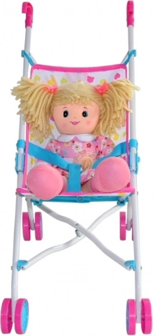 De zitting met wasbare polyester bekleding en veiligheidsriemen houdt de pop of knuffel stevig op zijn plek. Geschikt voor poppen tot 50 cm lengte.