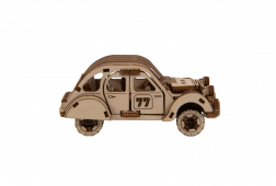 Dit model van een rallyauto biedt een aantrekkelijke combinatie van creatief plezier en elegante interieurdecoratie. De onderdelen van eersteklas berkenmultiplex klikken precies in elkaar – zonder lijm en schroeven – met als resultaat een indrukwekkende retroauto met tal van fijne details.