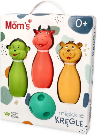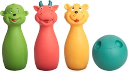 Ontdek een leuke set voor de allerkleinsten: drie schattige dierenkegels en een sensorische bal van zacht materiaal. Het spel stimuleert fijne motoriek, oog-handcoördinatie en zintuiglijke waarneming. Het veilige, zachte en kleurrijke design trekt de aandacht van kinderen en ondersteunt het leren van kleuren, vormen en dierennamen.