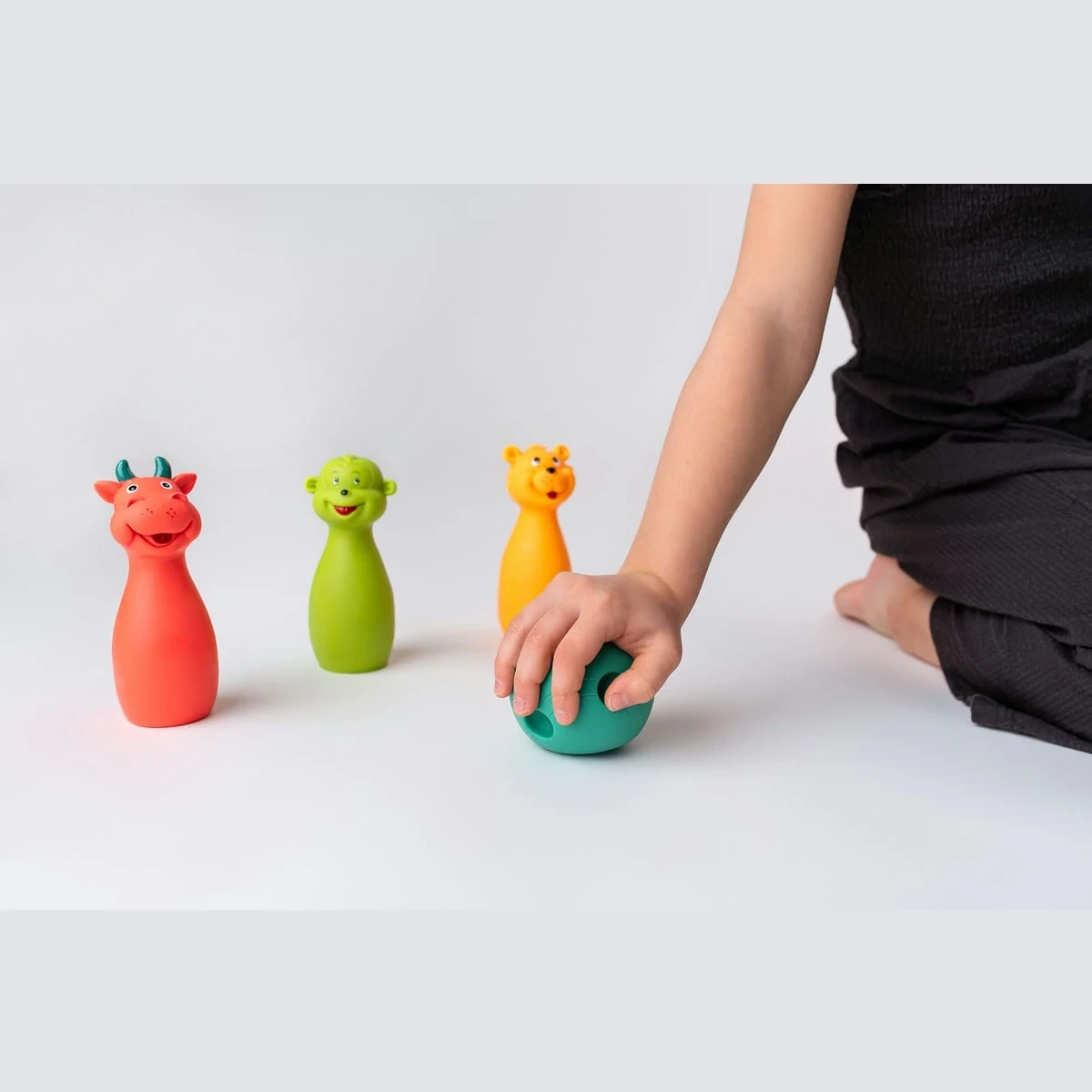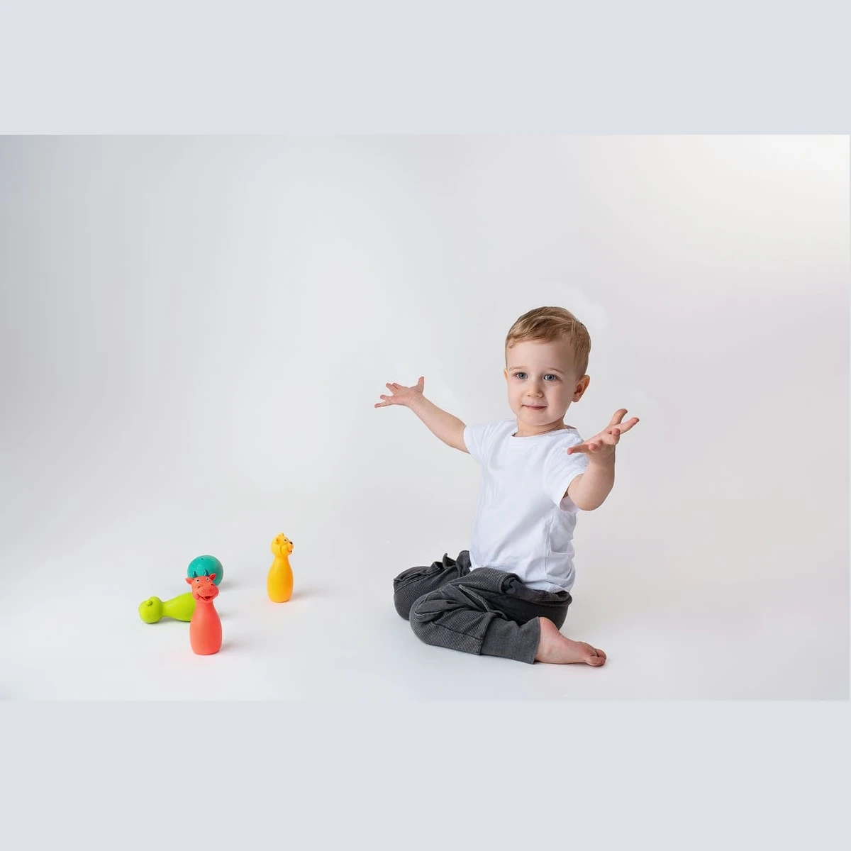 Het rollen van de bal en omvergooien van de kegels ontwikkelt oog-handcoördinatie, nauwkeurigheid en balans spelenderwijs.