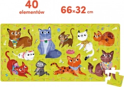 Schattige CzuCzu-puzzel met kattenthema die kleine dierenliefhebbers vanaf 3 jaar zal verrassen. De set bevat 40 stevige stukjes, waarmee je een afbeelding van 66 × 32 cm legt. Tijdens het puzzelen ontwikkelen kinderen spelenderwijs hun fijne motoriek, concentratie en observatievermogen, en leren ze bovendien kleuren en vormen herkennen.