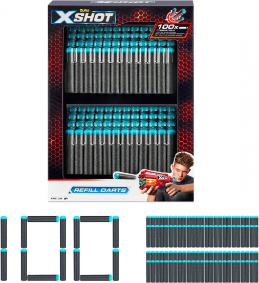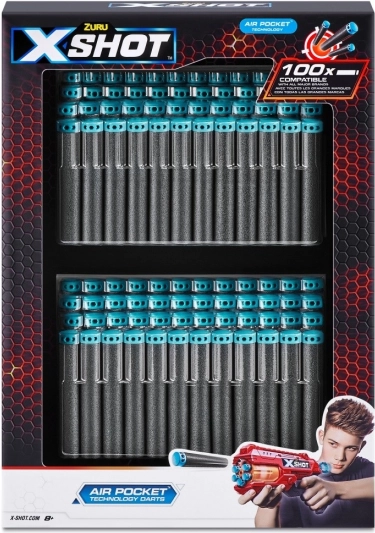 Vul je uitrusting aan met een verpakking van 100 X-Shot Excel foam darts, die compatibel zijn met de meeste blasters. Licht en duurzaam foam met Air Pocket Technology zorgt voor betere nauwkeurigheid, groter bereik en veilige fun voor kinderen vanaf 8 jaar.