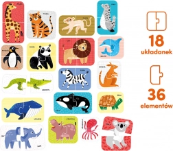 De CzuCzu koppelpuzzel – wilde dieren is de ideale eerste puzzel voor de allerkleinsten. Kinderen verbinden twee stukken met bekende exotische dieren, zoals een olifant, tijger of leeuw. Tijdens het spelen trainen ze spelenderwijs hun concentratie, logica en oog-handcoördinatie en leren ze kleuren en vormen onderscheiden.
