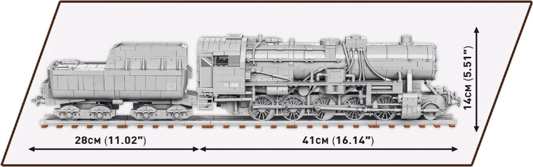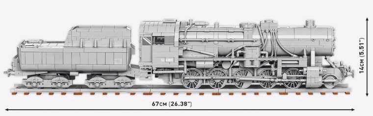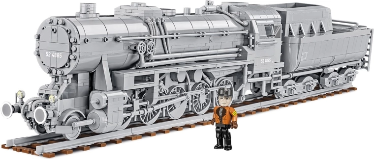 De set met het uitzonderlijke, blokkenmodel van de Duitse stoomlocomotief Kriegslokomotive Baureihe 52 uit de Tweede Wereldoorlog maakt deel uit van de nieuwe Trains-collectie van COBI. De constructie van blokken reproduceert perfect de hele carrosserie, verhoudingen en details van de legendarische stoomlocomotief, die waarschijnlijk de meest geliefde en herkenbare is voor alle treinfans ter wereld.