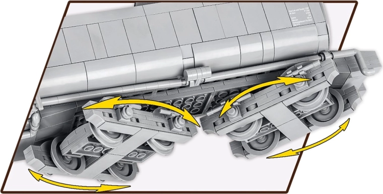 De unieke camouflage van het voertuig zal zeker de aandacht trekken. De locomotief is uitgebracht in grijs, overeenkomstig de kleur waarin Duitse militaire locomotieven aan het oostfront waren geschilderd tijdens de Duitse invasie van de Sovjet-Unie. De set bevat ook een speciale minifiguur van een Duitse militaire machinist. Het 1:35-model van de locomotief heeft, naast gedetailleerde reproducties zoals symbolen, nummering en markeringen, talrijke prints van meters in de locomotiefcabine. Dankzij het eenvoudig afneembare cabinedak kun je naar binnen kijken en de natuurgetrouw gereproduceerde details van de bedieningsapparatuur bekijken. Er is zelfs gedacht aan een detail als de imitatie van brandende kolen in het vuurhaard!