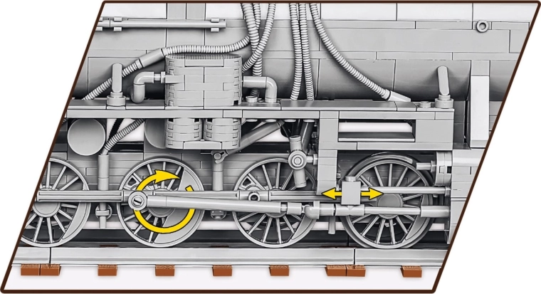 Net als bij een echte stoomlocomotief is het volledige wielmechanisme met elkaar verbonden, zodat het gelijktijdig beweegt. In het model bevinden zich tandwielen die een complex mechanisme vormen dat zorgt voor een realistische beweging van de wielen van de hele aandrijving. Het is voldoende om het model lichtjes te duwen om het hele systeem in beweging te zetten.