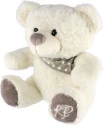 Deze zachte pluchen teddybeer van 35 cm is gemaakt om te knuffelen en te kalmeren. Dankzij het zachte materiaal en de fijne details wordt hij geliefd bij de allerkleinsten én oudere broertjes en zusjes. De witte kleur met contrasterende bruine accenten en het schattige sjaaltje geven het speeltje een tijdloze uitstraling.