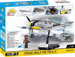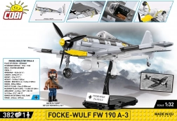 Dit enkelbaans eenpersoons gevechtsvliegtuig is bekend om zijn krachtige BMW 801 D-2 motor en uitzonderlijke kenmerken, inclusief de toepassing van een extra bewapeningssysteem. De Focke-Wulf FW 190 A-3 bouwset is een getrouwe replica van het vliegtuig op schaal 1:32, die gemakkelijk samengesteld kan worden uit 382 hoogwaardige bouwstenen van COBI. De nationale kleurstelling van het vliegtuig is voorzien van nauwkeurig uitgewerkte details.