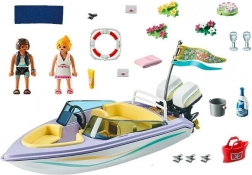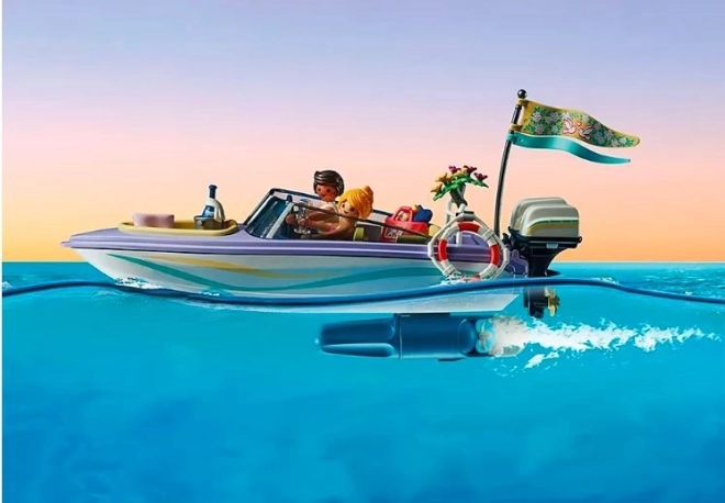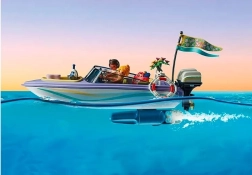 Deze set van PLAYMOBIL nodigt uit tot veel romantische momenten en uren speelplezier. Na het romantische huwelijksfeest vertrekken de kersverse echtgenoten op huwelijksreis; een tocht met de motorboot over zee belooft onvergetelijke ervaringen.