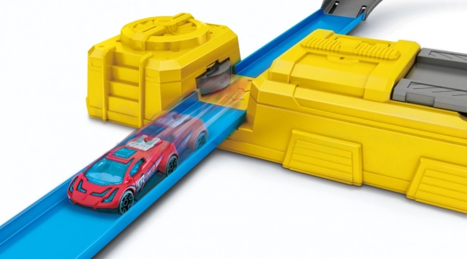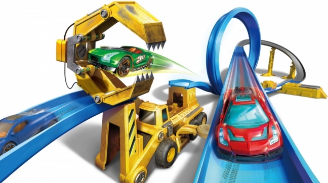 De lanceersectie en ramp laten de autootjes snelheid maken en spectaculaire sprongen met nauwkeurige landingen uitvoeren.