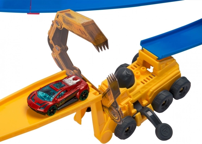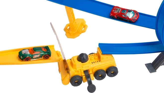 De racebaan met loop en ramp biedt kinderen actievol plezier vol stunts. Dankzij de snelle blauwe rails, gele steunen en het lanceermechanisme rijden de autootjes door de loop en wagen ze gedurfde sprongen. De set is ontworpen voor eenvoudige montage en duurzaamheid bij dagelijks spelen.
