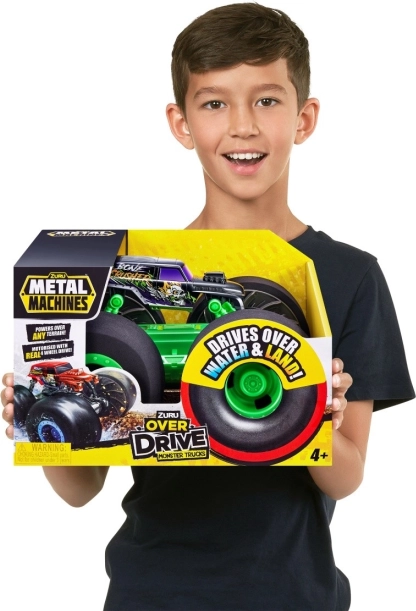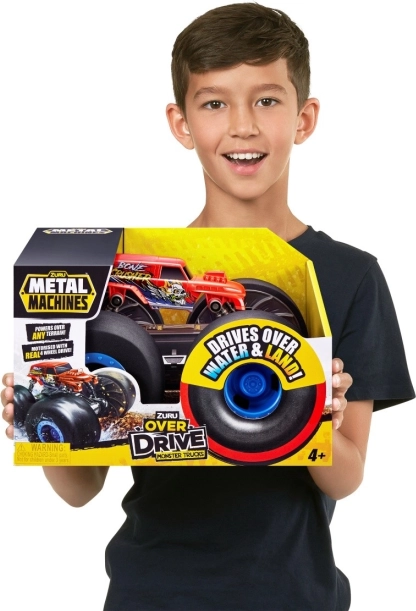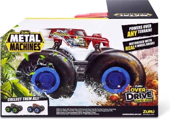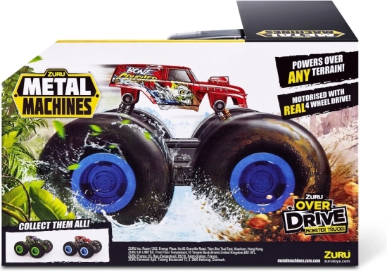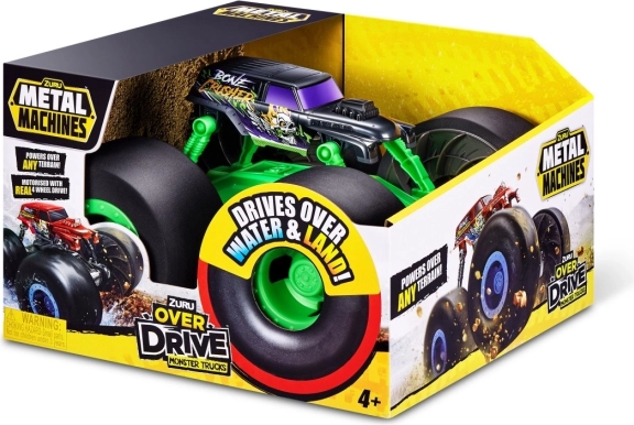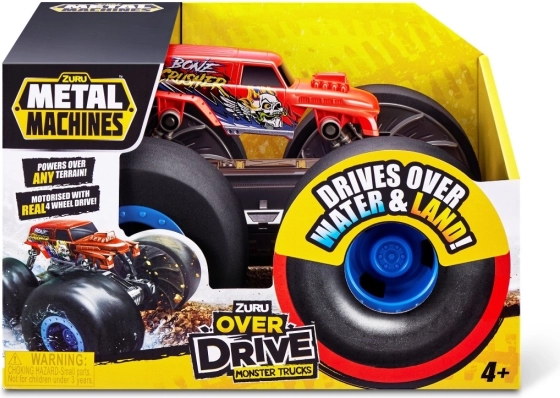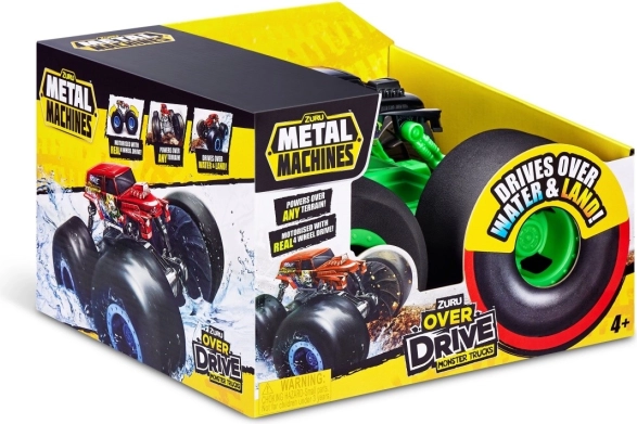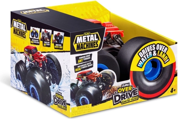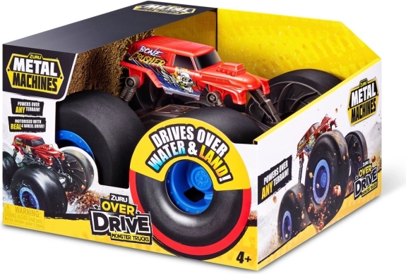 De ZURU Metal Machines Over Drive monstertruck is gemaakt voor ongeremd plezier. De robuuste constructie, grote wielen en echte vierwielaandrijving geven de auto zekerheid op ruw terrein, gras, zand en zelfs op het wateroppervlak. Met één druk op het gas schiet hij naar voren, overwint obstakels, rijdt tegen de muur op en laat spectaculaire trucs zien.