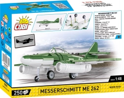 De Messerschmitt Me 262 was het eerste operationeel ingezette straaljachtvliegtuig ter wereld. Met deze COBI-bouwset bouw je hem in een schaal die past bij grote bommenwerpers: 1:48. Het model is circa 23 cm lang en heeft een vleugelspanwijdte van 26 cm, met realistische details, prints en een functioneel, afneembaar landingsgestel.