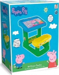 Schattig schoolbankje met Peppa Pig-thema is ideaal voor kinderen die zich voorbereiden op hun eerste schoolervaringen. Het biedt een comfortabele zitplaats, een handige lade voor teken- en knutselspullen en een voetensteun voor extra comfort, alles gemaakt van duurzaam plastic.