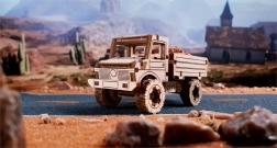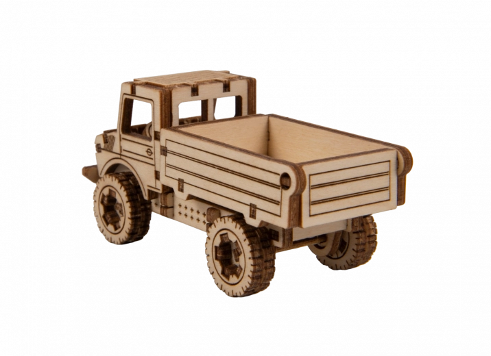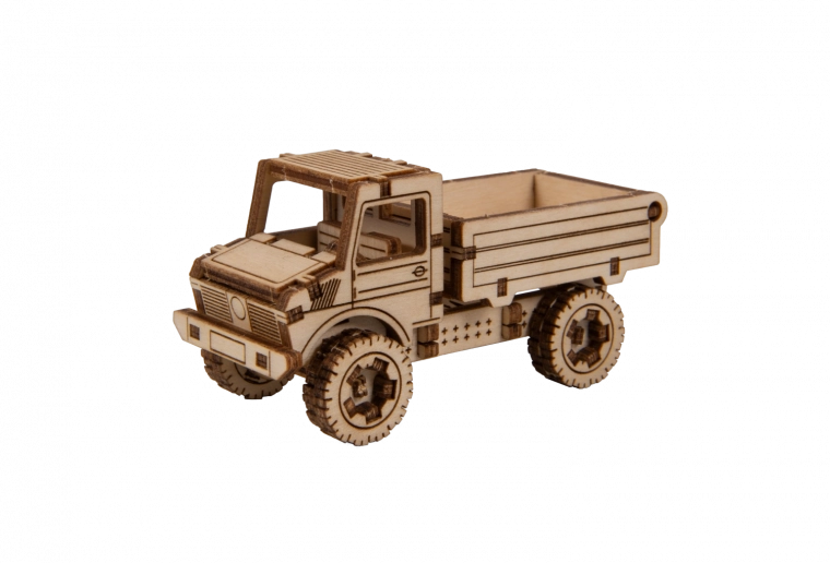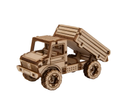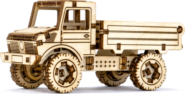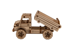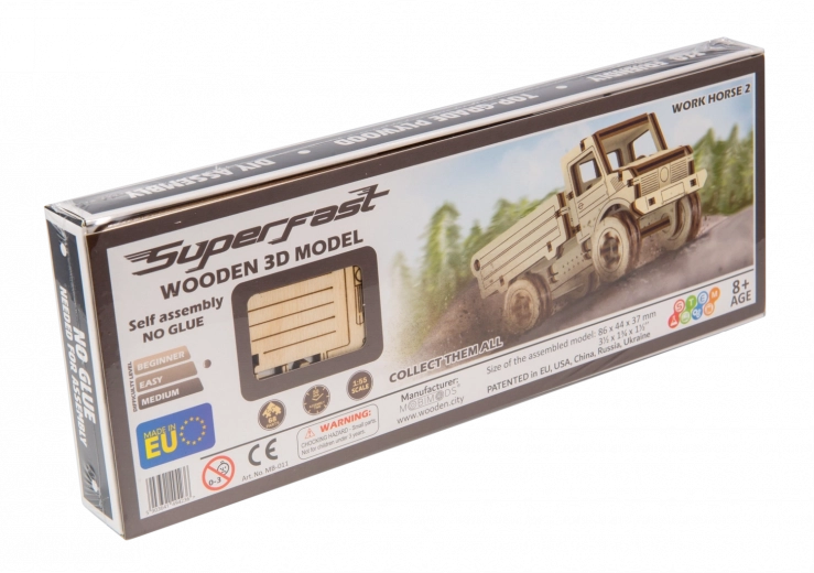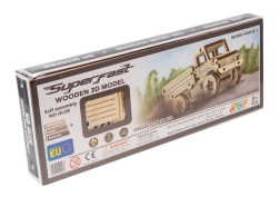 De houten 3D-puzzel WOODEN CITY Superfast vrachtauto is een ideale keuze voor liefhebbers van modellen, knutselen en techniek. De montage is eenvoudig en duurt ongeveer 1 uur, waarbij de afzonderlijke onderdelen van kwalitatief multiplex precies in elkaar passen en zonder lijm stevig blijven zitten. Het resultaat is een functioneel mechanisch model met een soepele loop en een gedetailleerde uitstraling.