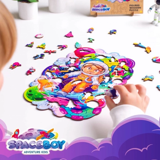 Geef kinderen een unieke ervaring met het leggen van de houten puzzel Ruimte-avonturier. Deze set bevat 120 nauwkeurig uitgesneden stukjes die door hun vorm meer uitdaging en plezier bieden dan klassieke puzzels. Hiermee ontwikkelen kinderen hun
