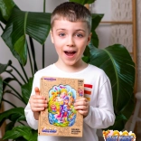 Het product is verpakt in een houten geschenkdoos en jute stof, wat het een perfect cadeau maakt. Het bovendeel van de doos kan ook dienen als voorbeeld van het te leggen motief. Twee extra stukjes fungeren als standaard, wat het leggen vergemakkelijkt. De puzzel is met trots gemaakt in Tsjechië.