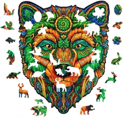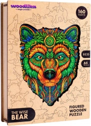 Unieke houten puzzel met het thema Wijze beer biedt een nieuwe uitdaging dankzij speciaal gevormde stukjes en door laser geaccentueerde details. Geniet van het puzzelen met gladde randen en hoogwaardige afwerking.