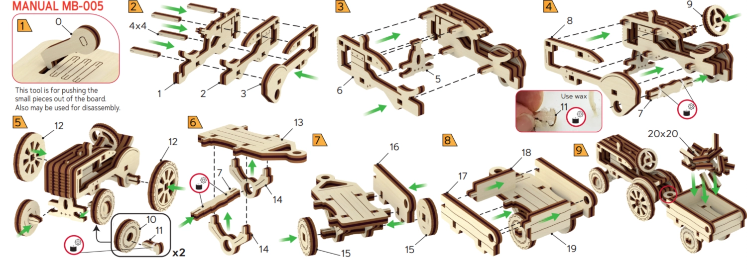 De bouw duurt ongeveer 30 minuten en dankzij de duidelijke instructies is het ook voor complete beginners goed te doen. Het voltooide model van natuurlijke berkenmultiplex blinkt uit door rijke details, bewegende wielen en een warme houten look die in elk interieur past – van kinderkamer tot kantoor.