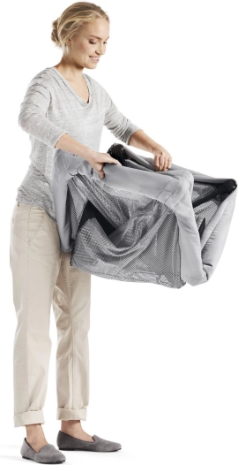 Met een gewicht van 6 kg en een praktische draagtas met handgrepen neem je het mee als een gewone reisbagage.