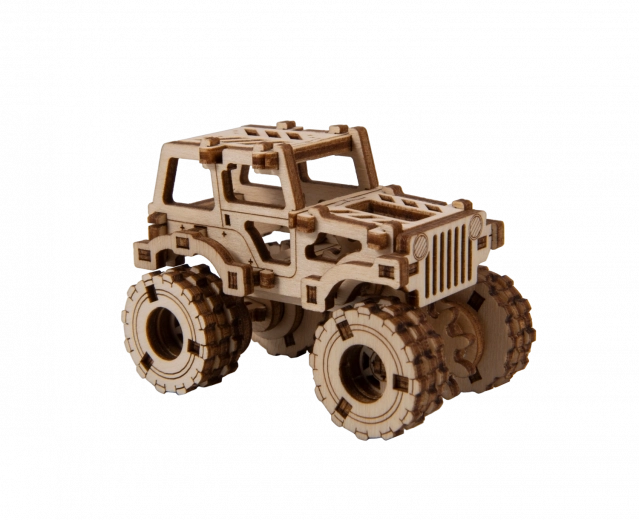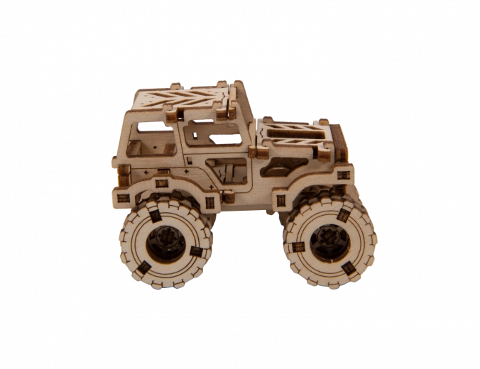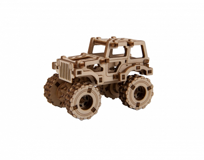 Geniet van het bouwplezier met de houten 3D-puzzel Monster Truck Superfast. Dankzij de precieze lasersneden passen de onderdelen perfect in elkaar en krijg je een stijlvol model met functioneel draaiende wielen – ideaal om neer te zetten of voor korte ritjes op tafel.