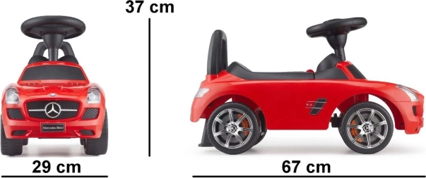 De door de legendarische MERCEDES‑BENZ SLS AMG geïnspireerde loopauto is ontworpen met oog voor detail en het comfort van kleine bestuurders. De aerodynamische vorm, de stevige afwerking en de eenvoudige bediening zorgen voor veel rijplezier, terwijl de rugsteun en de stabiele constructie helpen een correcte zithouding te behouden.